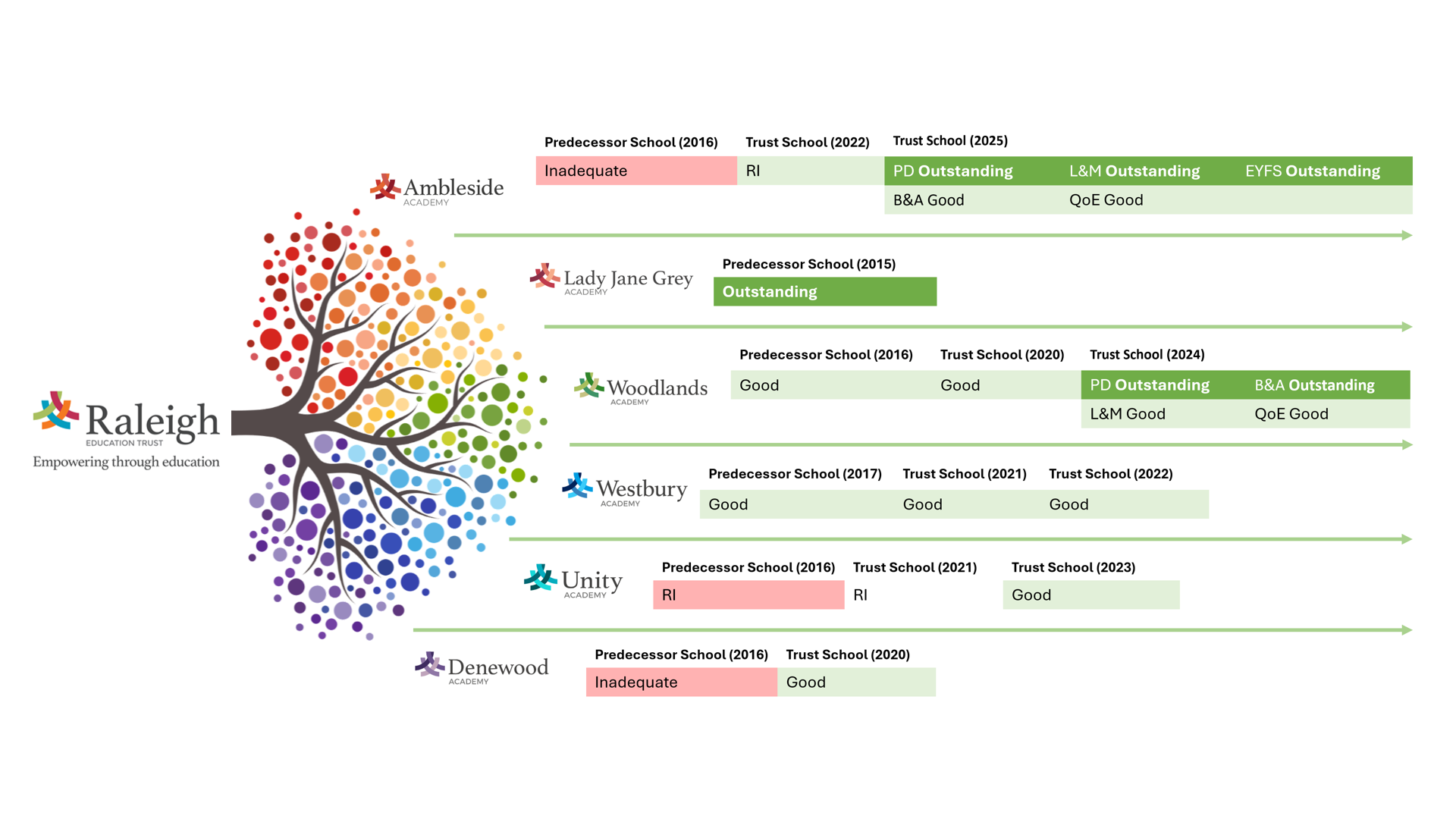Improvement in all schools is now well embedded and all the schools are collaborating with other schools and Trusts to share our best practice.